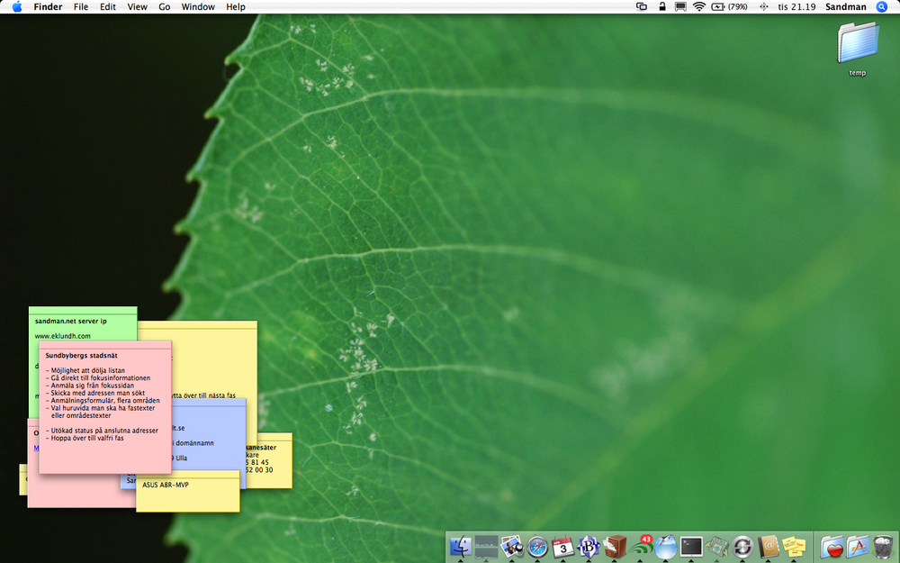 Men sedan slog det mig - lägg alla stickies-lappar över varandra i en helig röra i hörnet av skärmen. Helt oläsliga blir dom då som ni ser