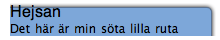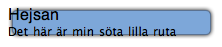 <div class='ruta'> <div class='overleft'> <div class='underright'> <div class='underleft'> <span class='mrubrik'>Hejsan</span><br> Det här är min söta lilla ruta </div> </div> </div> </div>