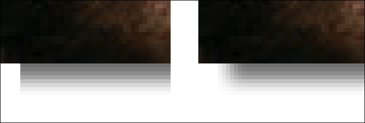 Och här ser vi en klar fördel till tabellmetoden, som faktiskt fungerar på vilken bakgrund som helst. Med CSS-metoden så måste du i förväg veta vilken färg bakgrunden är som bilden ska ligga på så att fade.png tonar ut i den färgen. Med tabellen så är det inte ett problem utan transparensen gör att den passar på vilken bakgrund som helst, även mönstrade (vilket vore omöjligt med CSS-metoden).