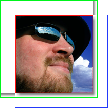 Så här är alltså tanken, vår 800x800 bild ska positioneras under bilden (röd ram) men förskjutas tio pixlar nedåt och åt höger för att skapa skuggeffekten. Bilden till höger är en mindre version men ni förstår principen