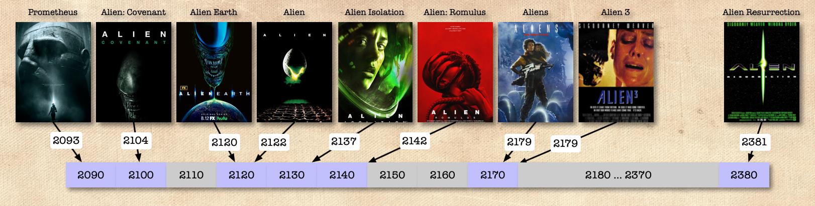 Med Alien Earth ute så behövs en timeline över de filmerna som är ute och när dom händer i tid, så här kommer det!