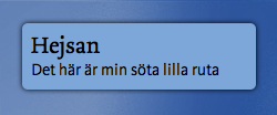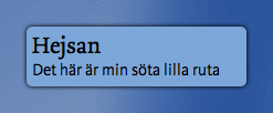 Och här är resultatet. Delen i koden som säger "10 10 10 10" är antalet pixlar per hör som ska användas av bilden. Det är en lite klurig funktion som kräver att man vet vad man håller på med om alla kanter inte är lika breda men för mig räcket det så här alltså. I och med senare versioner av Safari så krävs inte "-webkit"-tillägget till dessa CSS-argument, men Firefox kan fortfarande behöva dem, då är det "-moz-border-image" som ska skrivas. Som ni ser så är resultatet identiskt med vår mallbild ovan.