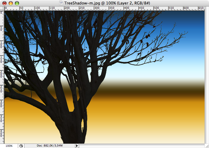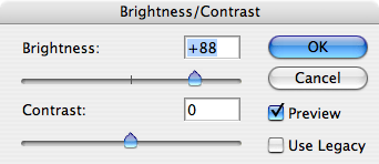 Vi har dock en del struktur av själva trädstammen kvar som spökar lite. Välj Image->Adjustments->Brightness & Contrast för att öka brightness vilket fräter bort dom delarna.