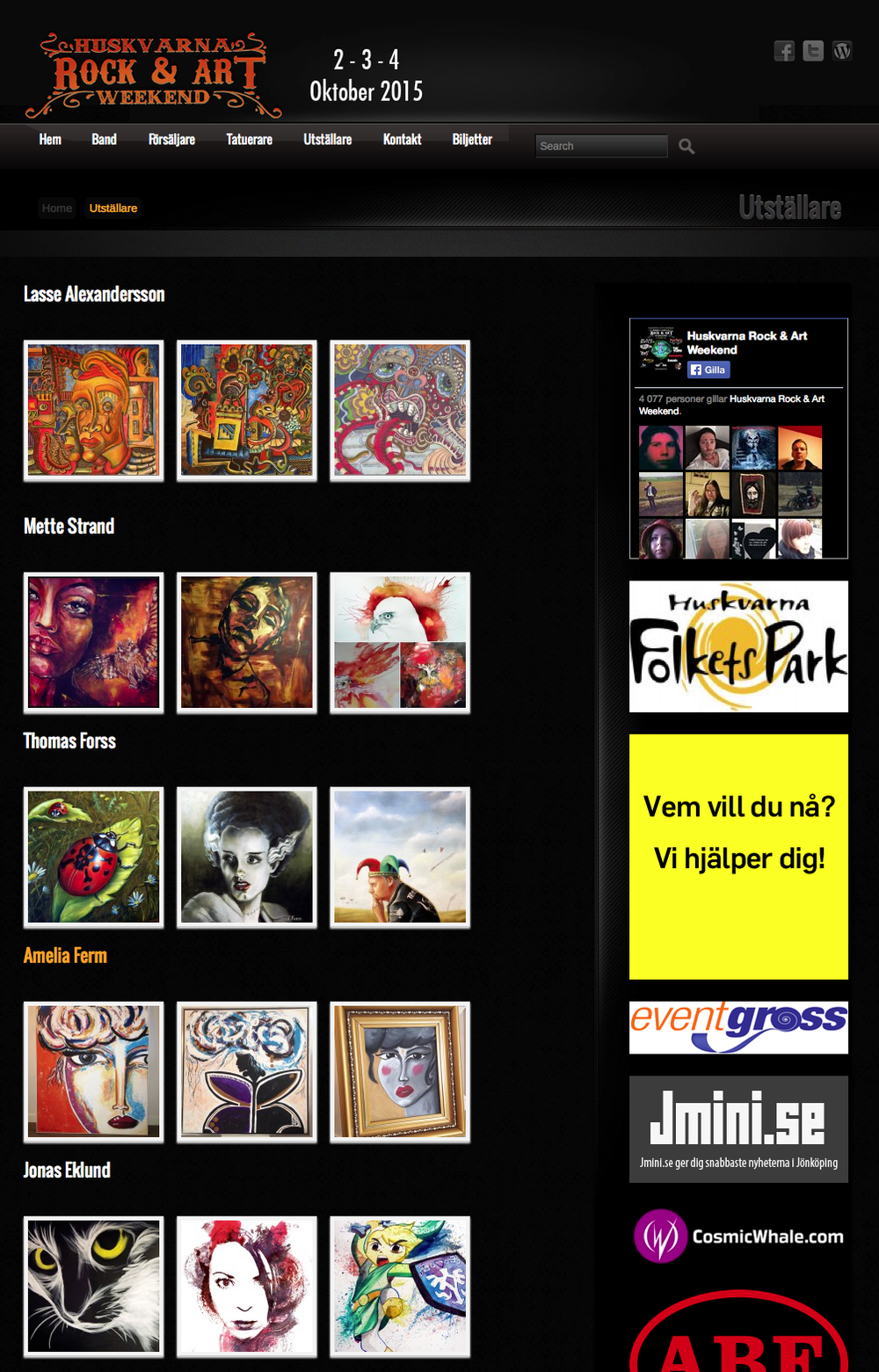 Jag blev tillfrågad om jag ville ställa ut mina tavlor på Huskvarna Rock & Art-festivalen och jag tackade givetvis ja! Det är en Kultur & Musikfestival den 2-4 oktober i år med tatuerare och dom har en konstutställning. Jättespännande!