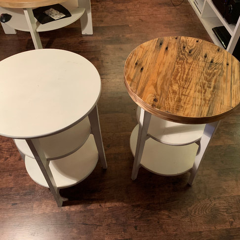 Vi har alla våra knivar i en enda röra i en låda, men Tinas far skickade iväg dem för att bli slipade och efter det får vi inte ens köra dem i diskmaskinen, och då känns det ju rätt dumt att ha dem ligga i en hög i en låda med. Så vi kollade på sådana där knivställ på Cervera men dom var så väldigt dyra, så jag byggde en egen av en ekskiva jag hade hemma redan, samt köpte lite grillspett på Citygross som var superbilligt.