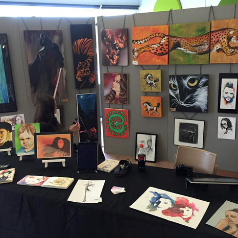 I helgen ställde jag ut på Huskvarna Rock and Art med ett litet urval av tavlor. Lånade hem ett par från kompisar som jag givit bort och tog med en del som bara stod och samlade damm hemma.