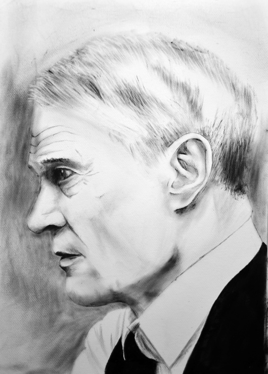 Drybrush-porträtt på min morfar som en present till min mormor.