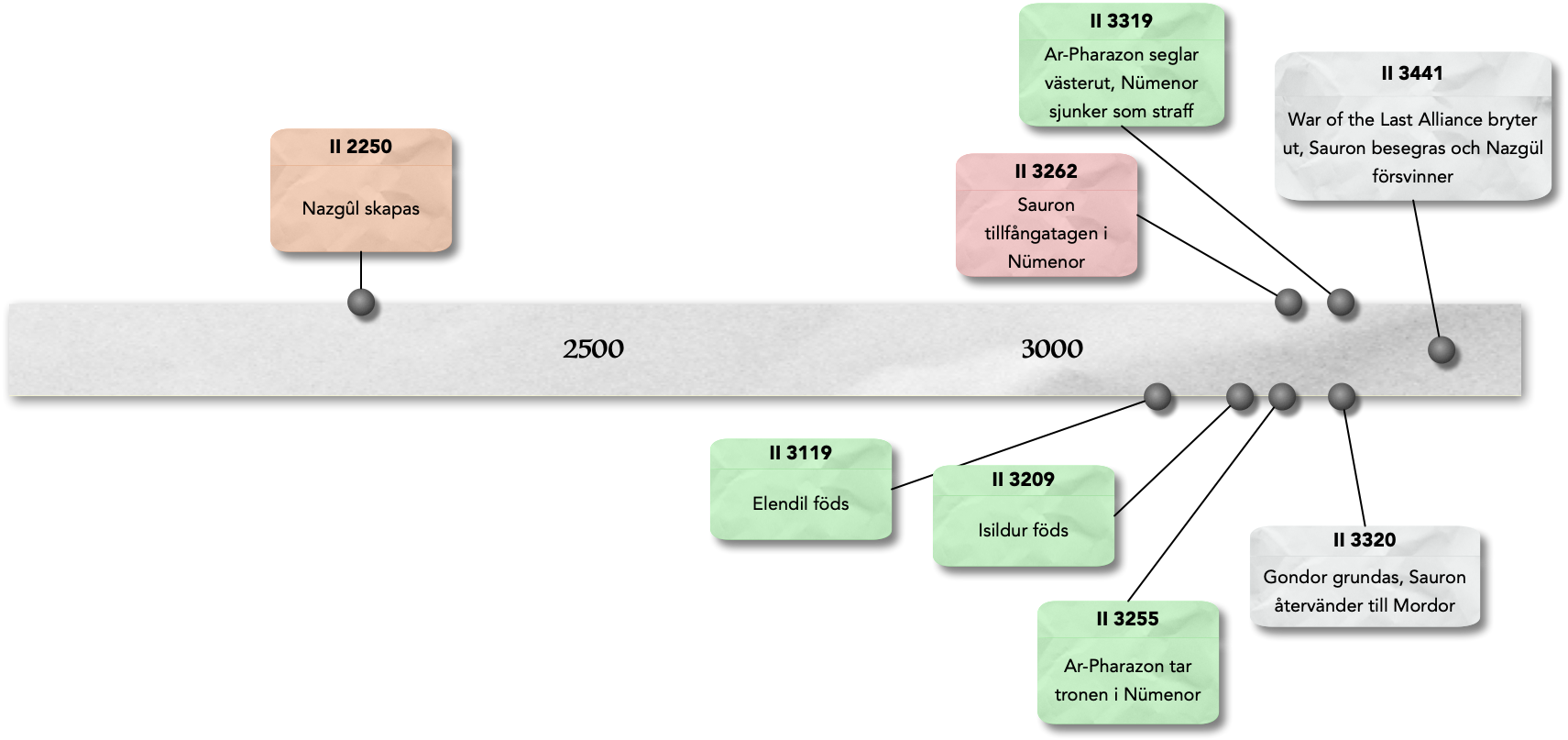 Jag satte ihop den här i frustration över TV-serien "Rings of Power" för att illustrera alla kronologiska fel i den serien och vad som egentligen hände och när det hände. Jag har inte sett säsong 2 av den för jag vågar inte med tanke på blodtryck och sånt.
