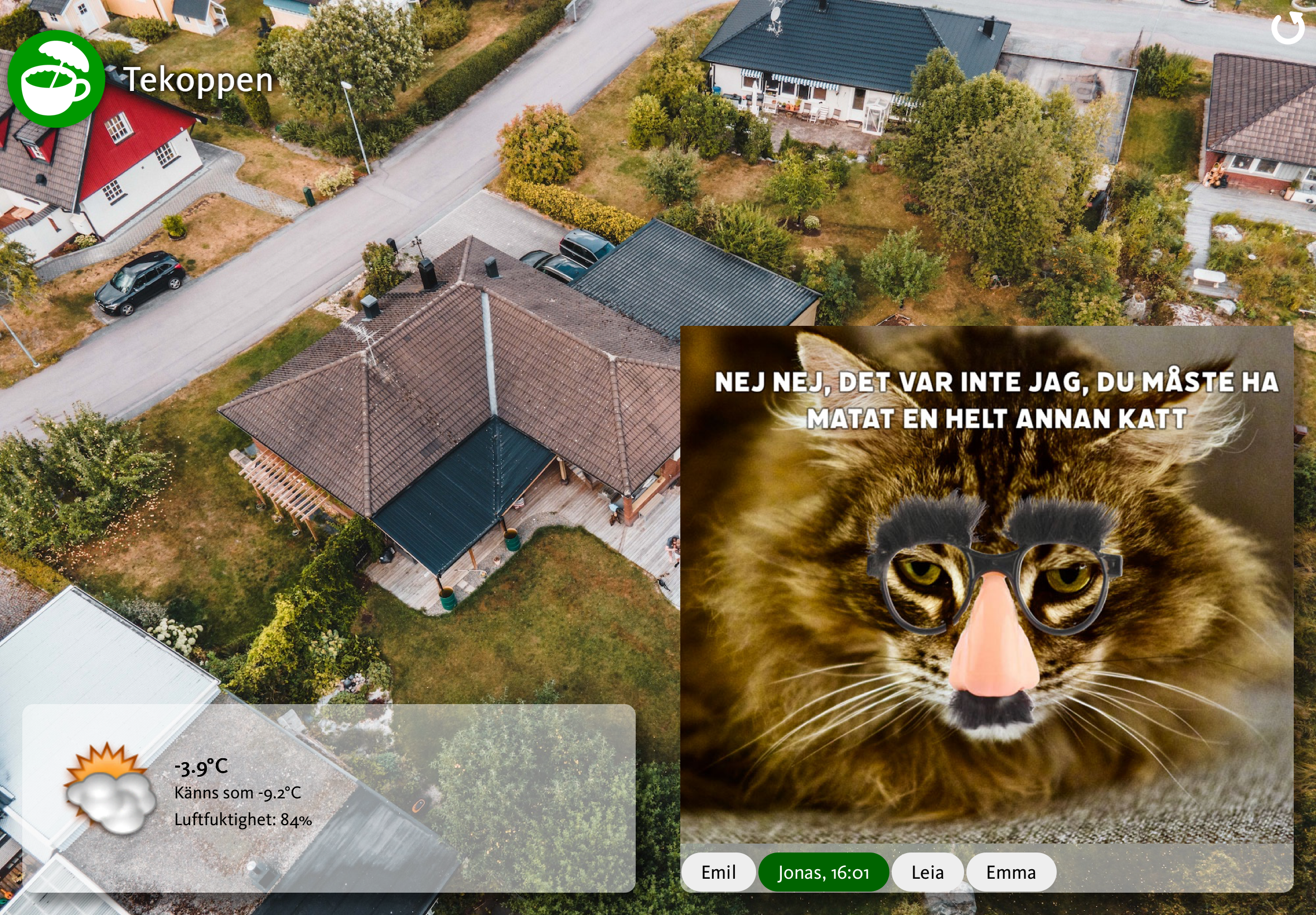 Detta är bara en skoj liten grej, för en hel del år sedan så hade vi en katt som hette Sigge, och då vi var fyra i hushållet så hade jag en app på iPad:en i köket där man skulle klicka när man matat Sigge, så om ingen hade matat honom på över åtta timmar (mjukmat, torrfoder hade han alltid tillgång till) så visades detta: