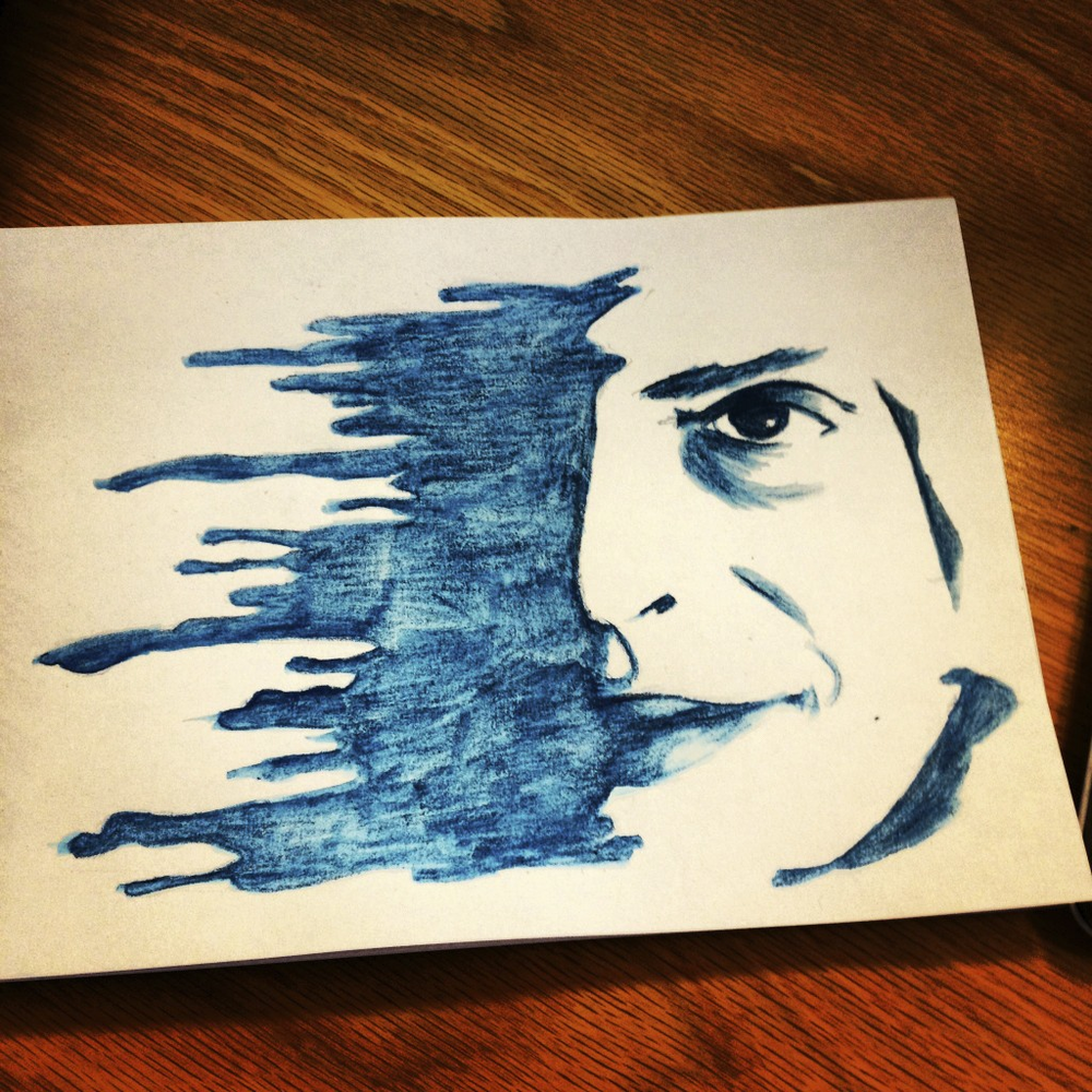 Dagens teckning är ett litet porträtt på Tina. Kanske inte superlikt - inte minst för att hennes högra ansiktshalva faktiskt inte smälter och rinner bort, det håller sig på plats och ser riktigt bra ut där!