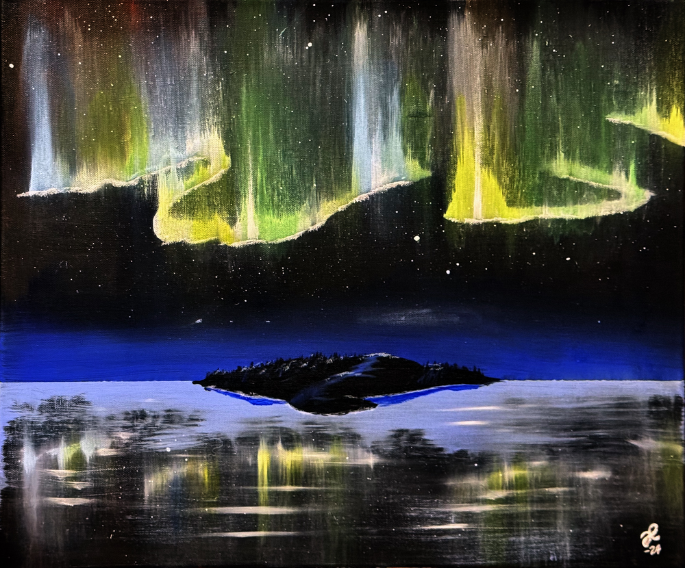 20 mars 2024 - tavla, norrsken, akryl