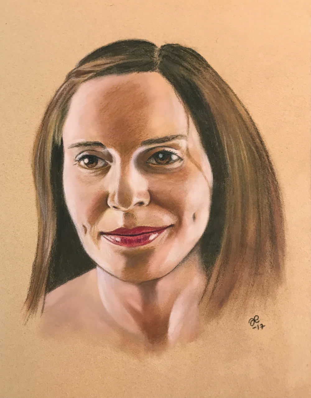 Jag tycker faktiskt det fungerade rätt så bra, här är ett porträtt av Tina där grunden är gjord med PanPastel och sen resten med Faber-Castells Polychromos.