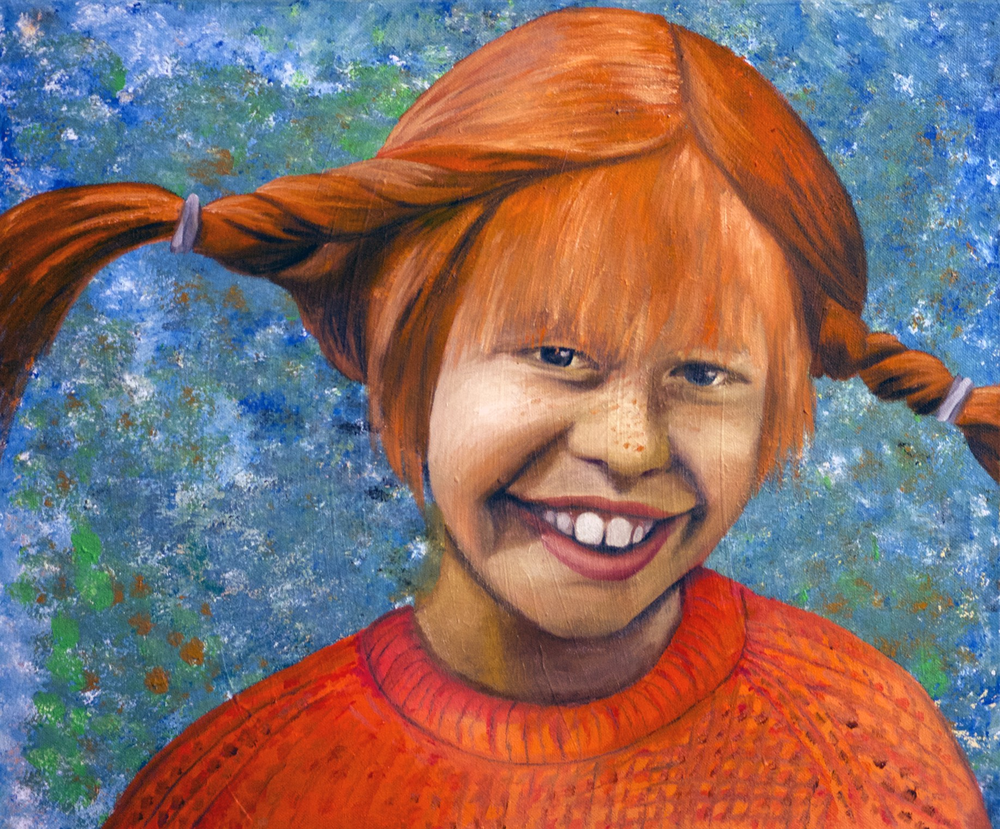 Tina tyckte jag skulle måla en tavla av Pippi Långstrump, kanske är någon som tycker den skulle passa på väggen? Olja på canvas
