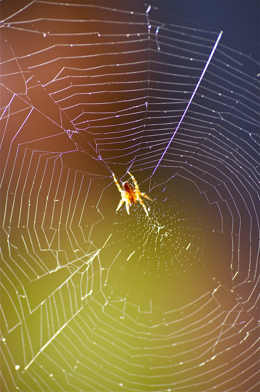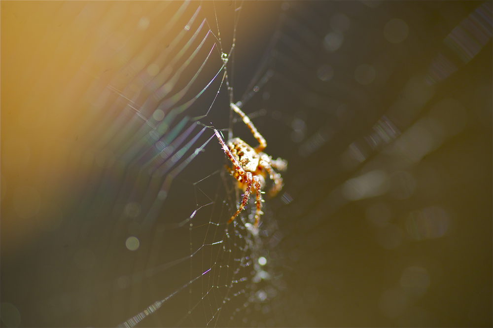 Två macrobilder på en spindel som vävde ett nät på vår altan