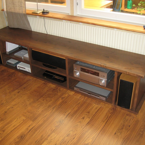 Men jag hade ju en ny design klar på en ny stereobänk som jag skickade till min syster, som lägligt nog jobbar som snickare, som beställde material. Jag åkte sen över till hennes jobb två gånger då vi byggde ihop bänken. Det var hemskt skojigt och det gick riktigt bra.
