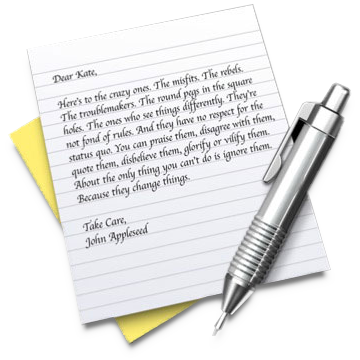 Texten i ikonen är för övrigt den text som Richard Dreyfuss läser i en välkänd Apple-reklam.