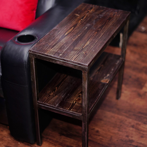 Efter ihoplimningen så slipade jag och bortstade hela ytan för att få fram lite struktur och sen betsade jag med ZAR mocca och sedan behandlade jag det med polyuretanlack för utomhusbruk samt byggde en ram med ben. Blev riktigt bra!