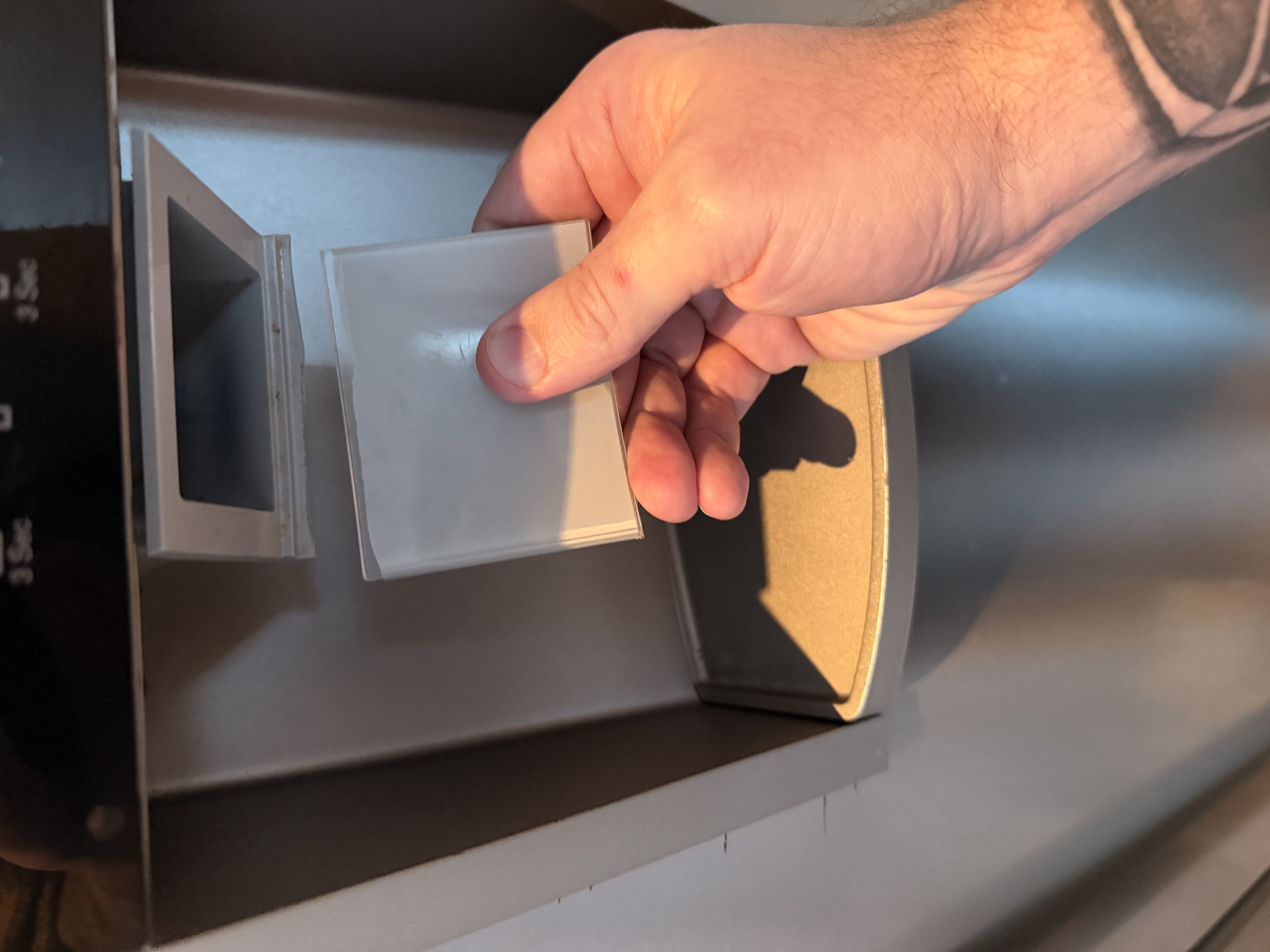 Så jag mätte och designade en ersättningsflärp som hakar i i framkant och sitter med dubbelhäftande tejp. Funkade skitbra!